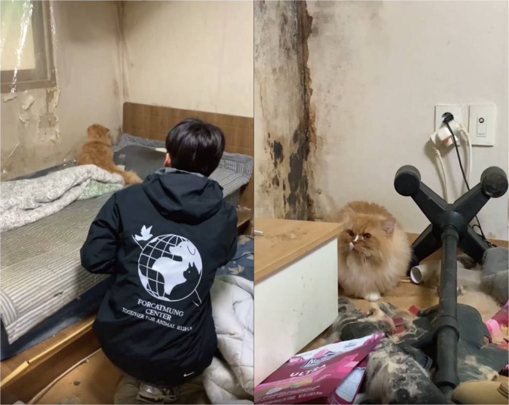 현장 환경이 매우 불량해 긴급 구조되어 입양센터로 이송되었으며, 같은 공간에서 피그미 햄스터 5마리와 도마뱀 9마리의 사체가 발견된 상황이었습니다.