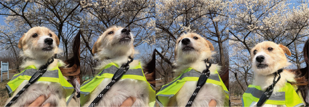 산책을 나가면 줄을 당기지 않고 옆에서 착하게 걷는 매너까지 완벽한 아이!