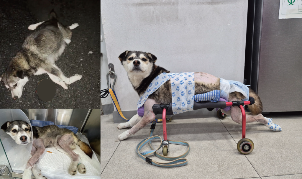 As a result of the accident, Haru was left paralyzed in her lower body, and sadly, the puppies she had given birth to were never found.