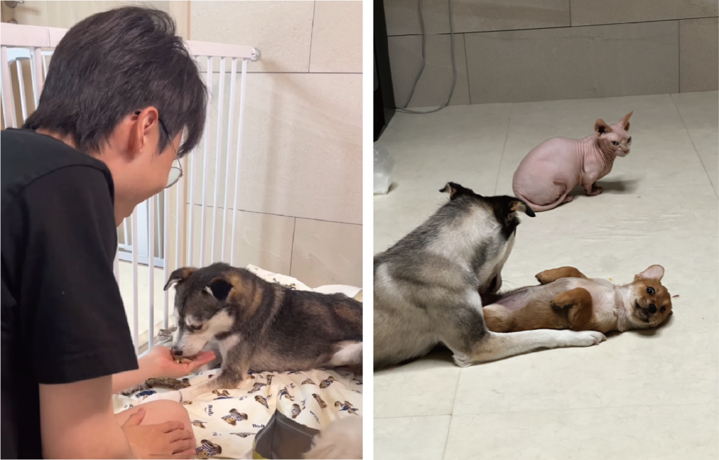 Haru was rescued after being found collapsed on the road following a traffic accident.