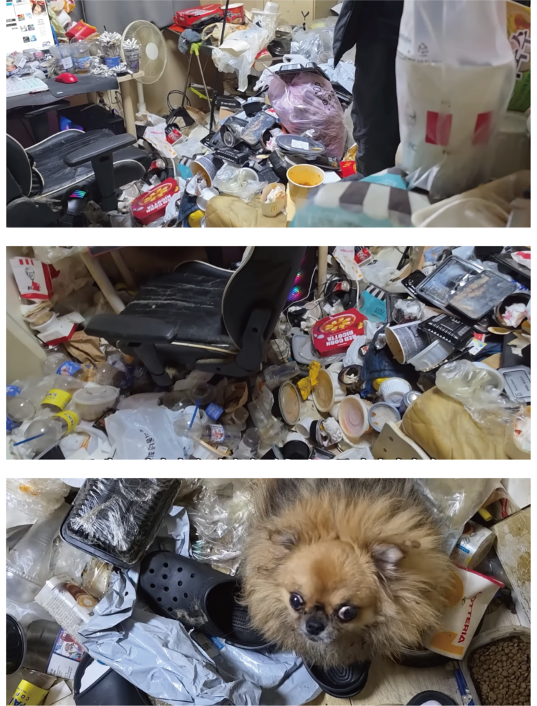 Mansour was rescued after being neglected in a filthy home filled with garbage.
