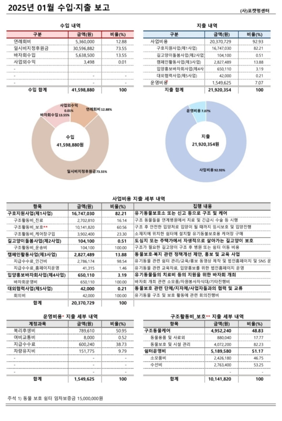2025년 1월 사단법인 포캣멍센터 후원 및 지출 내역
